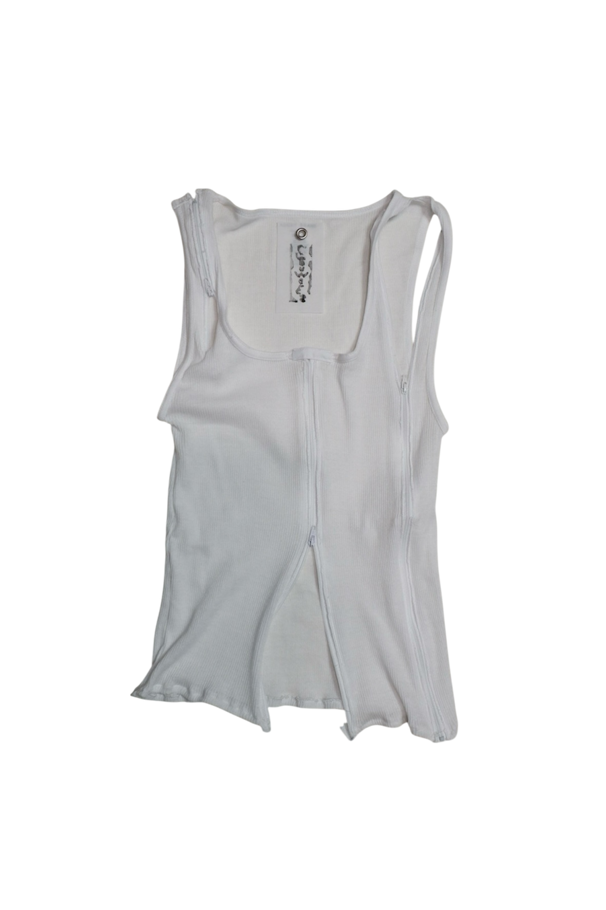 up-cycled, experimental white tank top featuring modular zipper details ꒰ᐢ. .ᐢ꒱₊˚⊹˖ ࣪⭑